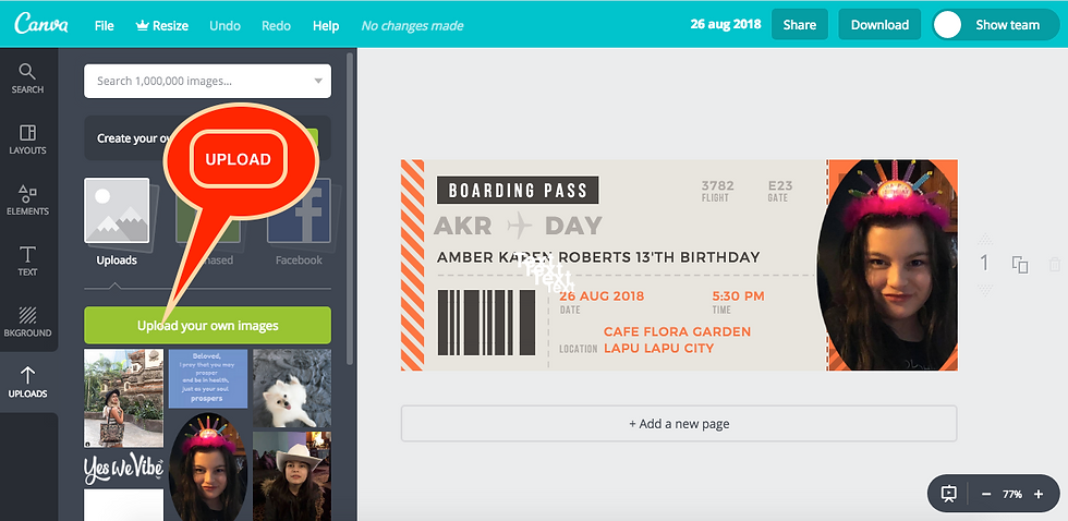 You can upload original or stock photos for a presentation with ease. Your images become readily available in the sidebar under “Uploads.” One great feature on Canva: Your images are saved the moment they are created, so there is no need to worry about closing out of a tab without saving.